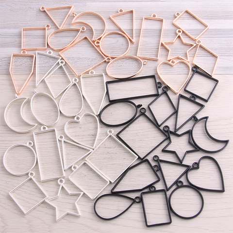 Marco de flor prensada hueca geométrica surtido, colgante de resina para fabricación de joyas, molde de bisel, 14 Uds. Por lote
